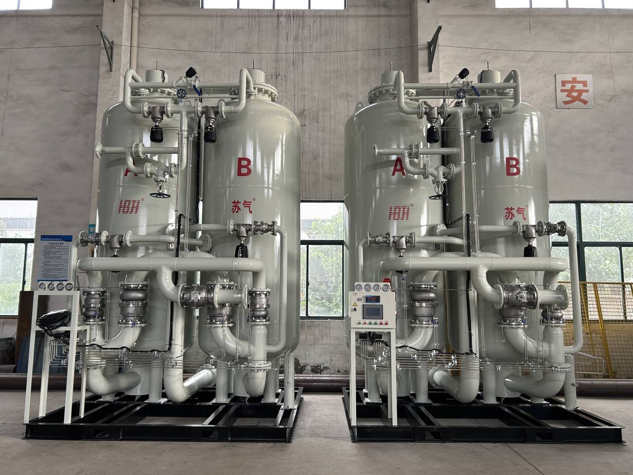 2、氮?dú)饧兌日{(diào)整方便,氮?dú)饧兌戎皇艿獨(dú)馀艢饬康挠绊?,普通制氮純?span style="';">在95%-99.99%之間任意調(diào)節(jié);高純度制氮機(jī)可在99%-99.999%之間任意調(diào)節(jié)。
